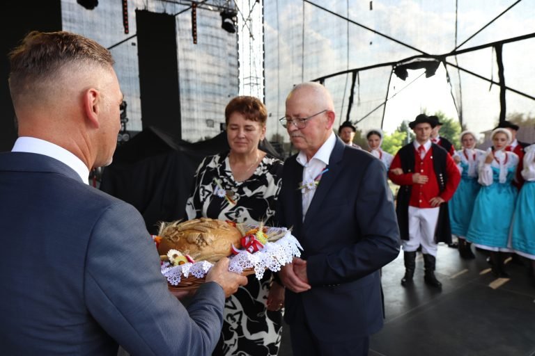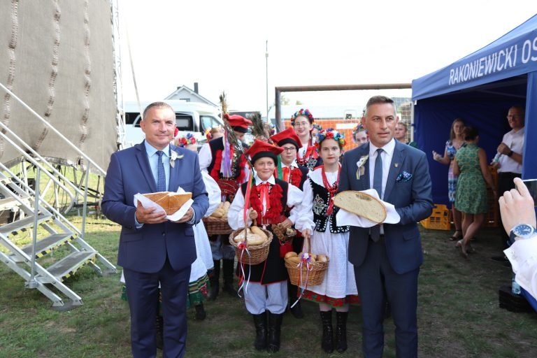 Wystąpienia gości oraz tradycyjny obrzęd dożynkowy z udziałem Zespołu Pieśni i Tańca „Kębłowo” wprowadziły wszystkich w wyjątkowy, świąteczny nastrój. Starostami Dożynek byli: pani Irena Kliś z Cegielska oraz pan Jan Furmaniak z Rostarzewa, którzy przekazali tradycyjny bochen chleba wypieczony z tegorocznej mąki na ręce Starosty Grodziskiego i Burmistrza Rakoniewic, którzy tradycyjnie podzielili się chlebem z mieszkańcami i uczestnikami uroczystości.
