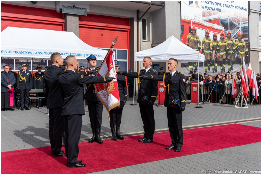 W dniu 9.10.2023r. w Szkole Aspirantów Państwowej Straży Pożarnej w Poznaniu odbyła się uroczystość ślubowania słuchaczy kształcenia dziennego w zawodzie technik pożarnictwa, turnusu XXXIII Państwowej Straży Pożarnej. Uroczystość rozpoczęła się Mszą Świętą koncelebrowaną, odprawioną w kościele parafialnym pod wezwaniem Świętej Trójcy na Poznańskim Dębcu, której przewodniczył Jego Ekscelencja Ksiądz Biskup Jan Glapiak – Wikariusz Generalny Archidiecezji Poznańskiej.