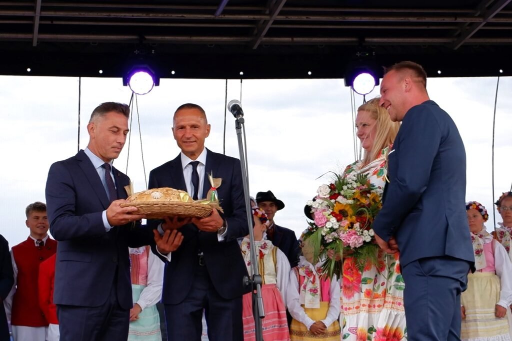 Starostami Dożynek byli: Pani Justyna Drywa oraz Pan Dawid Zandecki, którzy przekazali tradycyjny bochen chleba na ręce Burmistrza Rakoniewic oraz przewodniczącego Rady Miejskiej Krzysztof Krawczyk. Gospodarze tradycyjnie podzielili chleb wśród zebranych mieszkańców i uczestników Dożynek. Był również czas na część artystyczną, podczas której wystąpiły dzieci z przedszkola i szkoły z Ruchocic, Zespół taneczny Country, Kabaret Buczanki z Bucza. W trakcie trwania całej uroczystości były przygotowane atrakcje dla dzieci, poczęstunek dla wszystkich, oraz różnego rodzaju stoiska. Wieczorem swój występ na scenie miała Kapela Zza Winkla, a zaraz po nich DJ KIKSUU zaprosił wszystkich do tańca.