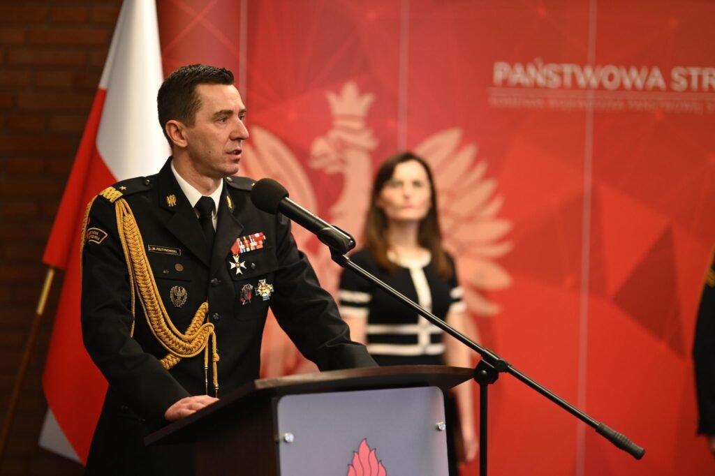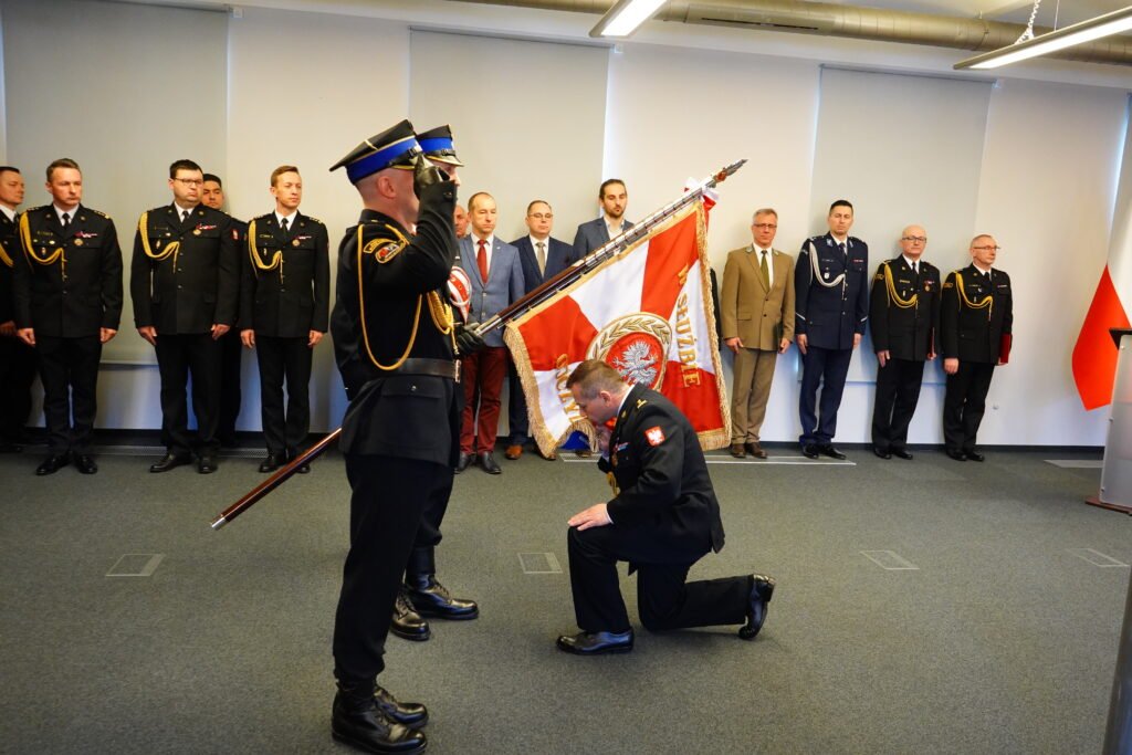 St. bryg. Jacek Strużyński podczas uroczystości, w obecności wojewody wielkopolskiej Pani Agaty Sobczyk oraz zaproszonych gości, złożył komendantowi głównemu PSP nadbryg. dr. inż. Mariuszowi Feltynowskiemu meldunek o przyjęciu obowiązków wielkopolskiego komendanta wojewódzkiego PSP.