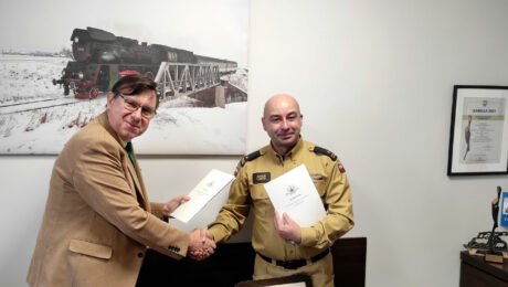 Dokument podpisali Dyrektor Centralnego Muzeum Pożarnictwa w Mysłowicach mł. bryg. Artur Luzar oraz Dyrektor Parowozowni w Wolsztynie Waldemar Ligma.