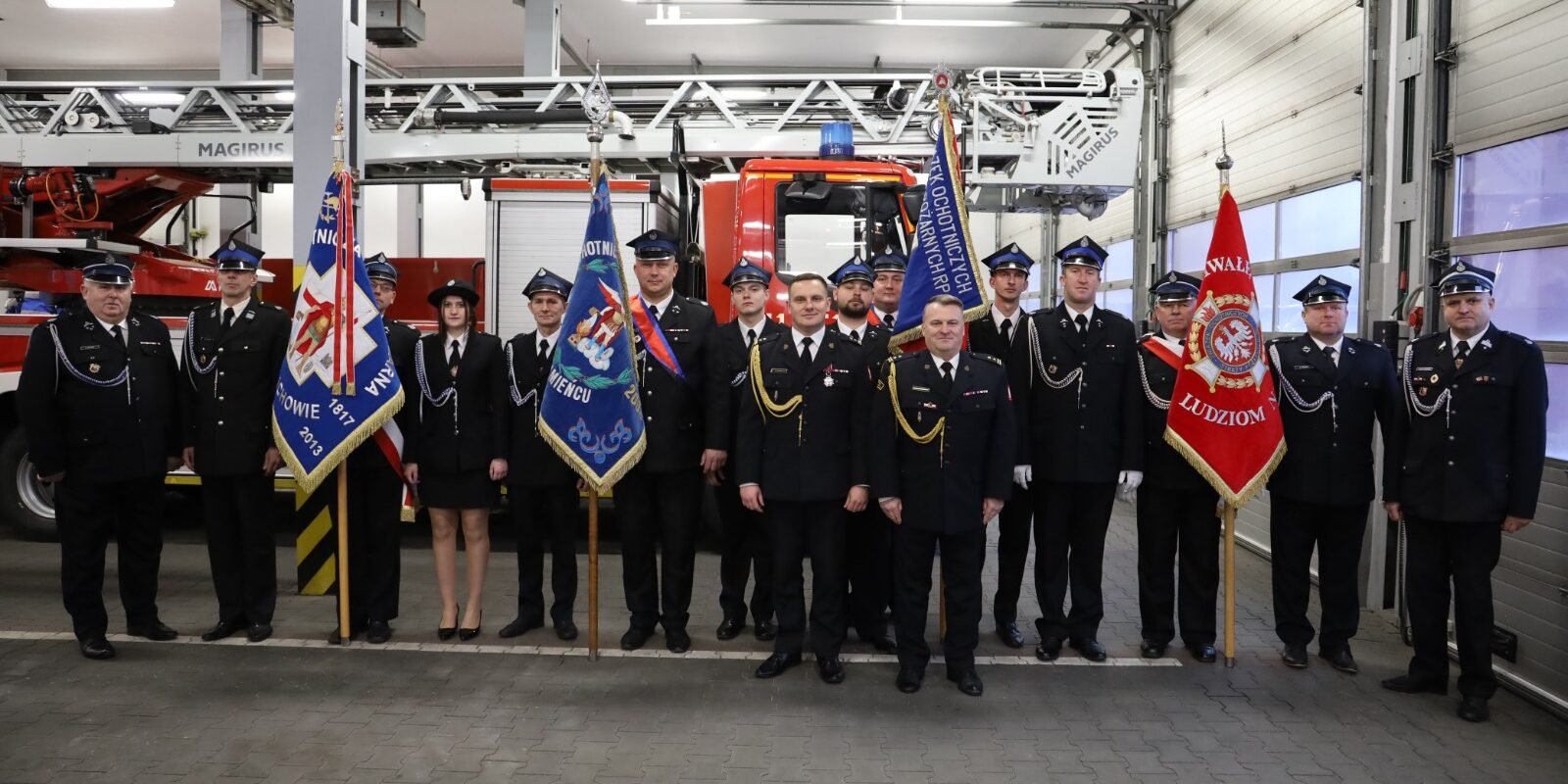 - Prezesi oraz naczelnicy jednostek OSP z terenu powiatu grodziskiego wraz z pocztami sztandarowymi