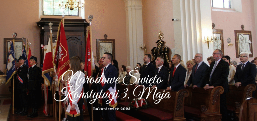 3 maja o godzinie 10.00, w kościele w Rakoniewicach, odbyła sie uroczysta Msza Święta w intencji Ojczyzny. Po mszy przemaszerowano na rynek, gdzie odśpiewano hymn Polski przy akompaniamencie orkiestry. Po hymnie przemawiał Burmistrz Rakoniewic, który podziękował wszystkim za udział w uroczystości oraz krótko wspomniał o samym święcie, tak ważnym dla nas wszystkich. Kolejnym punktem obchodów było złożenie kwiatów pod pomnikiem Pamięci i Wolności przez przybyłe delegacje z gminy Rakoniewice. Na koniec Orkiestra Dęta dała krótki koncert, podczas którego zagrała kilka utworów, do których również młodzieżowa część orkiestry przepięknie zatańczyła.