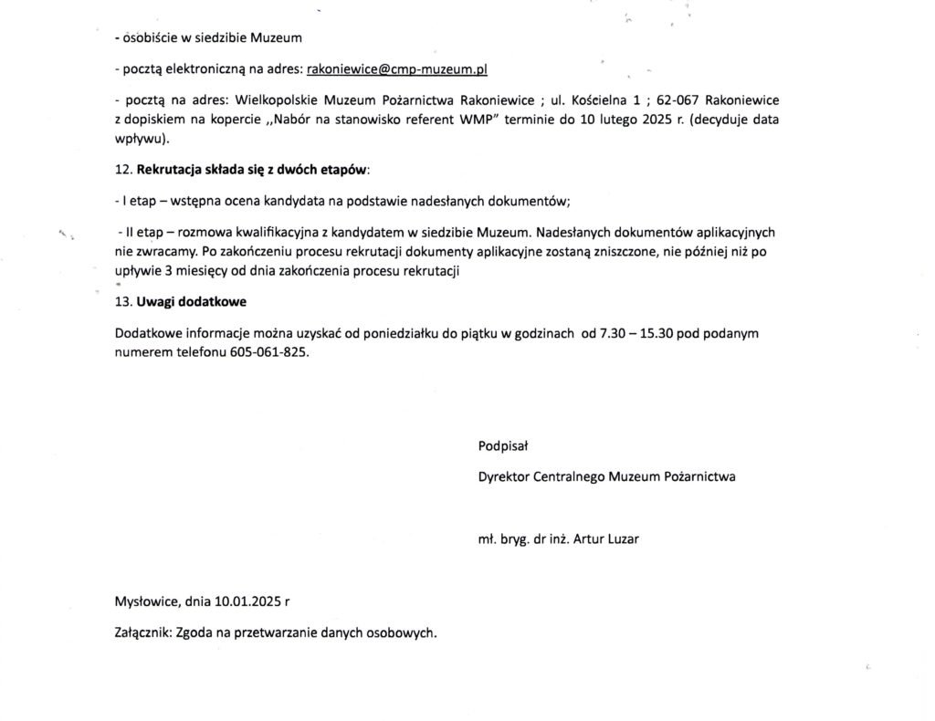 - Dyrektor Centralnego Muzeum Pożarnictwa w Mysłowicach – mł. bryg. Artur Luzar,