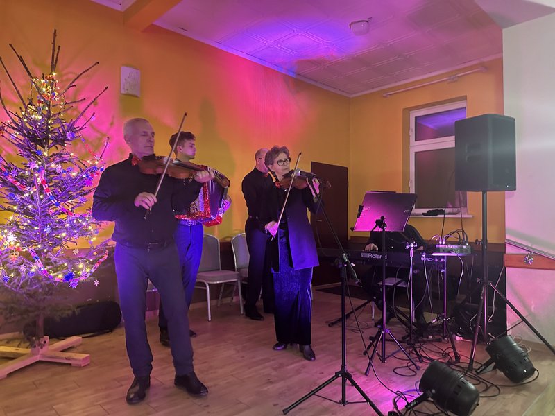W trakcie spotkania przy suto zastawionym stole, zebrani wspólnie odśpiewali kolędy przy muzyce Zespołu Instrumentalnego z Kębłowa.