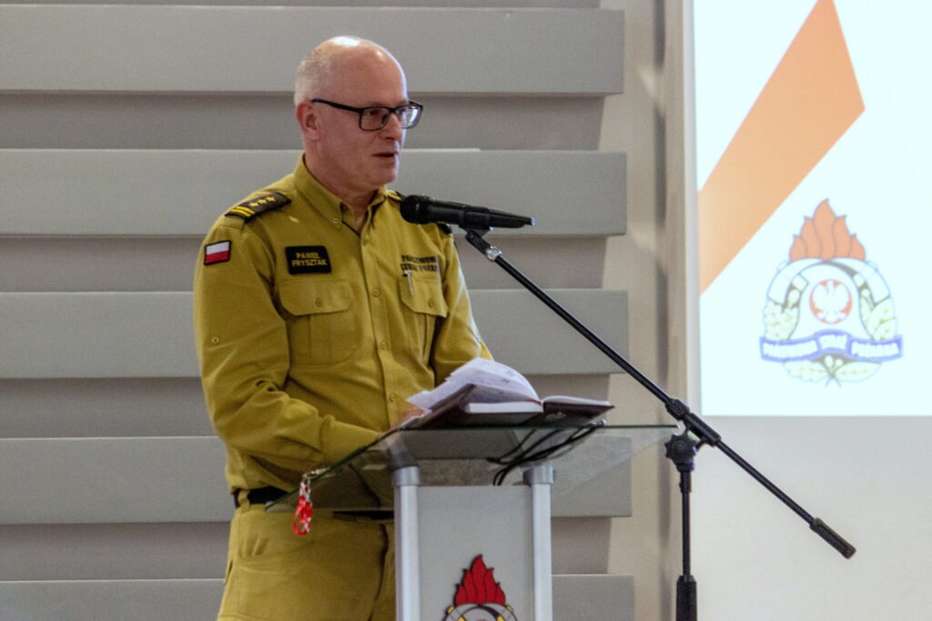 Kolejnymi prelegentami byli Komendant Centralnej Szkoły PSP w Częstochowie – st. bryg. Jarosław Jankowski oraz Dyrektor Centralnego Muzeum Pożarnictwa – mł. bryg. Artur Luzar, którzy omówili przedsięwzięcia realizowane w kierowanych przez nich jednostkach organizacyjnych w 2024 roku i przedstawili plany na 2025 rok.