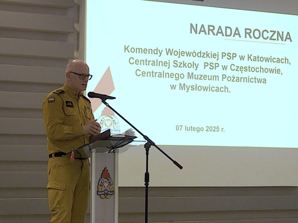 Jako pierwszy głos zabrał Śląski Komendant Wojewódzki PSP – nadbryg. Wojciech Kruczek, który po krótkim wstępie i przywitaniu gości, przedstawił sprawozdanie z funkcjonowania Krajowego Systemu Ratowniczo – Gaśniczego na terenie województwa, podsumował działalność komend powiatowych i miejskich PSP oraz przedstawił zamierzenia na 2025 rok. W swoim wystąpieniu po krótce omówił najtrudniejsze wyzwania, z którymi musieli się mierzyć śląscy strażacy w ubiegłym roku, między innymi pożary nielegalnych wysypisk odpadów oraz działania powodziowe na południu województwa. Zaprezentował również realizację zakupów i inwestycji poczynionych przez jednostki organizacyjne PSP woj. śląskiego. W końcowej części wystąpienia położył nacisk na wdrażanie nowo uchwalonej ustawy o ochronie ludności i obronie cywilnej i wyzwaniach, które stawia ona przed formacją.